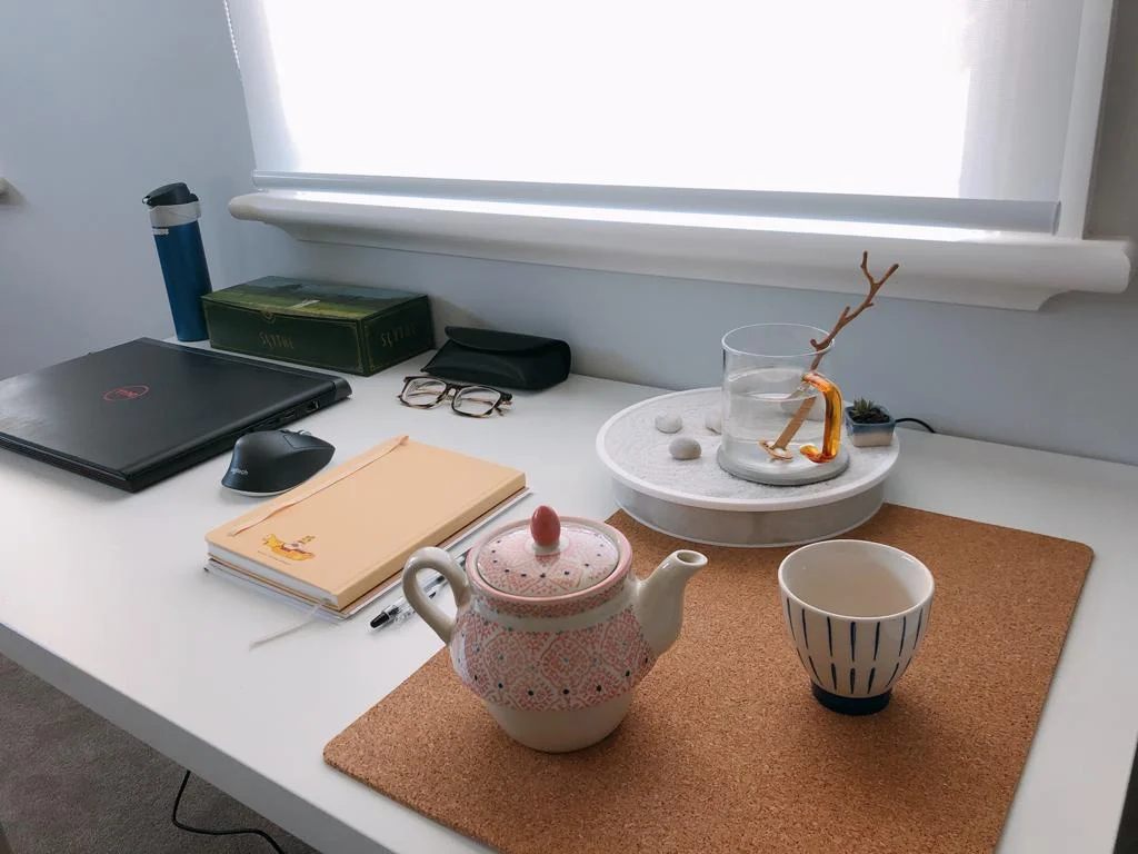 Inspired by the profound Zen Garden, a practice deeply rooted in meditation, we curated elements of white sand, stones, and water to craft a miniaturized Zen Garden for the workspace. The open-ended activities within, like raking the sand and arranging stones, offer a canvas for creativity during microbreaks, devoid of set rules yet laden with the therapeutic release of stress. Zenscape encapsulates the Zen principles of naturalness, simplicity, and austerity. It artfully incorporates metaphors of still and moving water, mirroring the yin and yang of work and leisure. The still water signifies stability and reflection, while the stirring water, initiated at the user's set intervals, beckons movement and introspection, catalyzing the inner resolution of work-related stress.